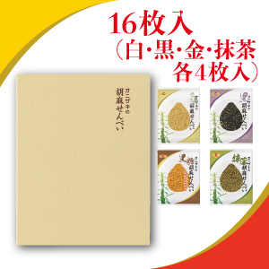 ごま一筋有余年。こだわりの味わいを、もっと手軽に、おいしくお召し上がりいただくために、新しい甘味『胡麻せんべい』を開発いたしました。 オニザキこだわりの「いりごま」と「つきごま」を絶妙なバランスで配合することで、格別の風味と、サクサクした食感を実現。『白胡麻せんべい』は上品でやさしい旨味を、『黒胡麻せんべい』は豊かな香ばしさをお楽しみいただけます。どちらも深い旨味が後を引く、手が止まらなくなるお菓子です。原料は砂糖、水飴、隠し味のごま油などシンプルで、化学合成添加物不使用。ご年配の方からお子様までお楽しみいただけるヘルシーな『胡麻せんべい』を、ぜひご賞味ください。