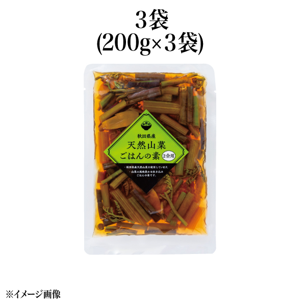 秋田県の出羽丘陵で採れた天然山菜を、ひとつひとつ手作業で丁寧に処理し、こだわりの調味料で仕上げた「炊き込みごはんの素」です。